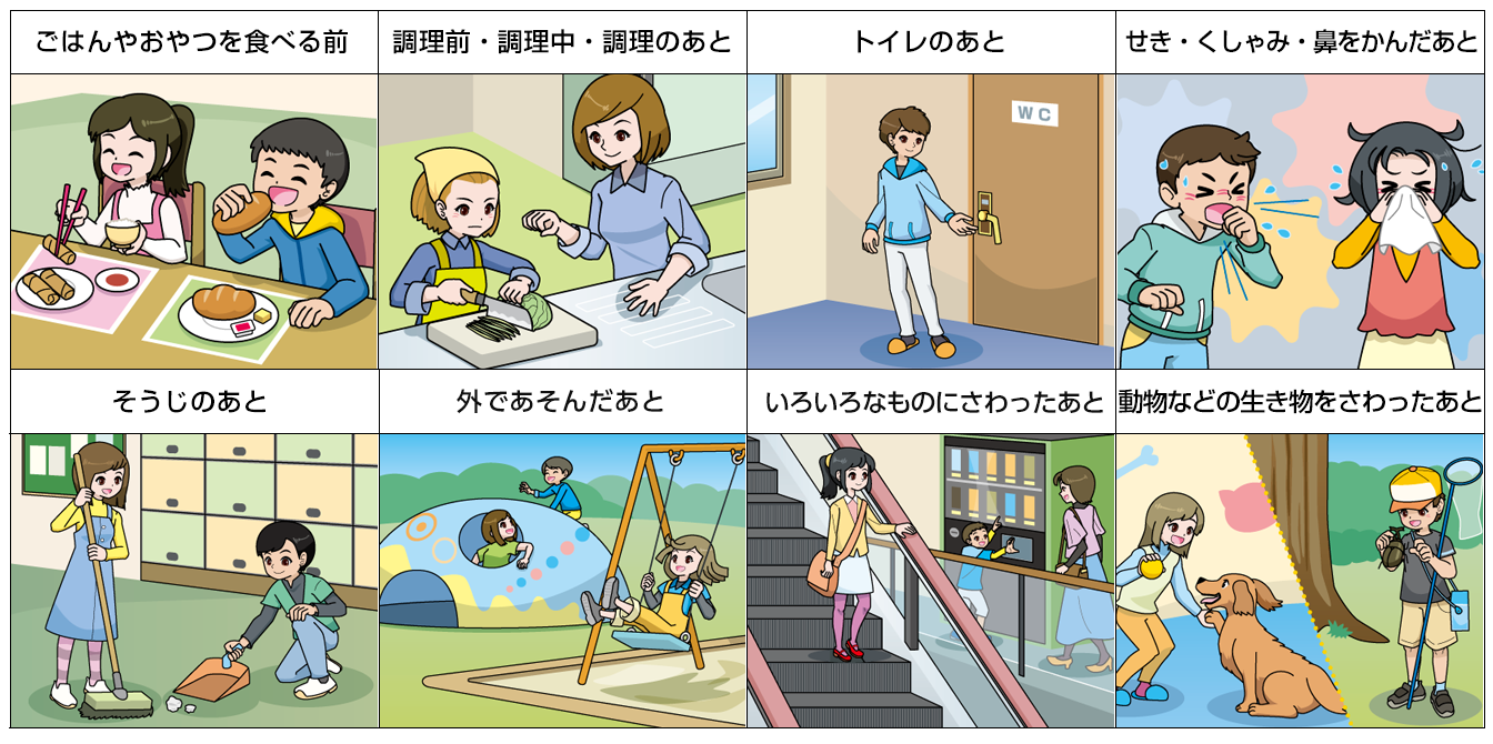 次のようなときには、手を洗いましょう。