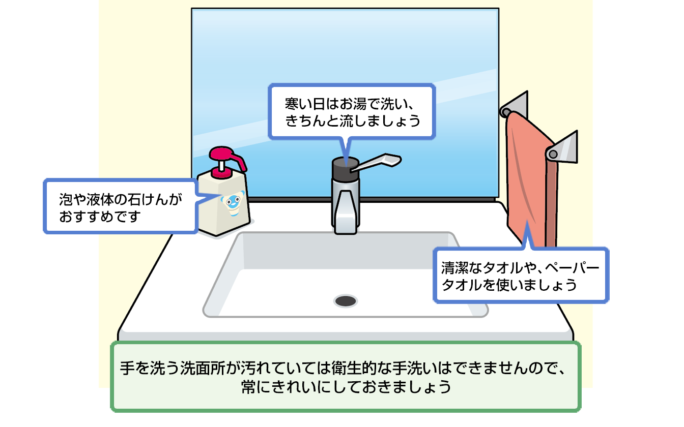 衛生的な手洗いを行うためには、石けんなどが必要です。