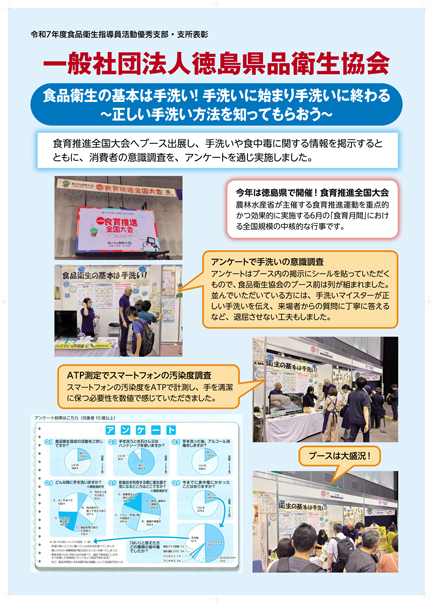 食育推進全国大会へブース出展し、手洗いや食中毒に関する情報をブース内に掲示するとともに、消費者の意識調査をアンケートを通じ実施しました。